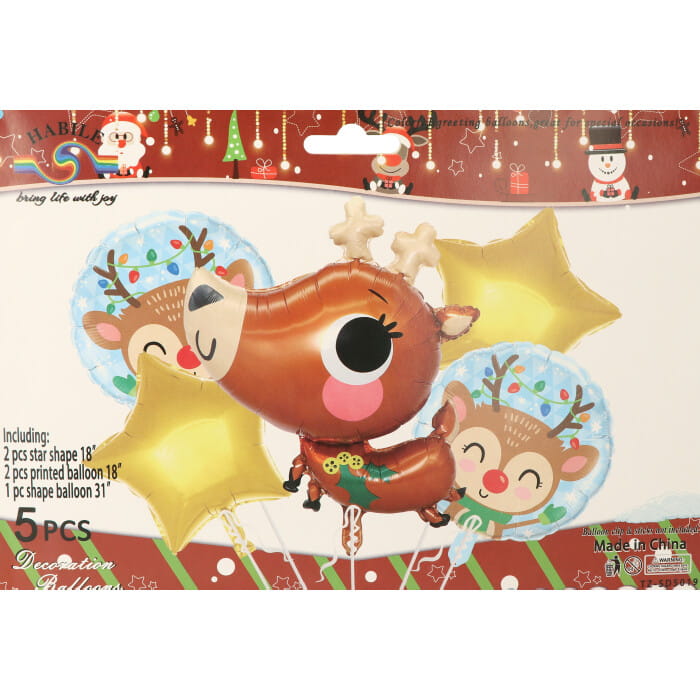 ZESTAW BALONÓW BOŻE NARODZENIE RENIFER 5 SZT
