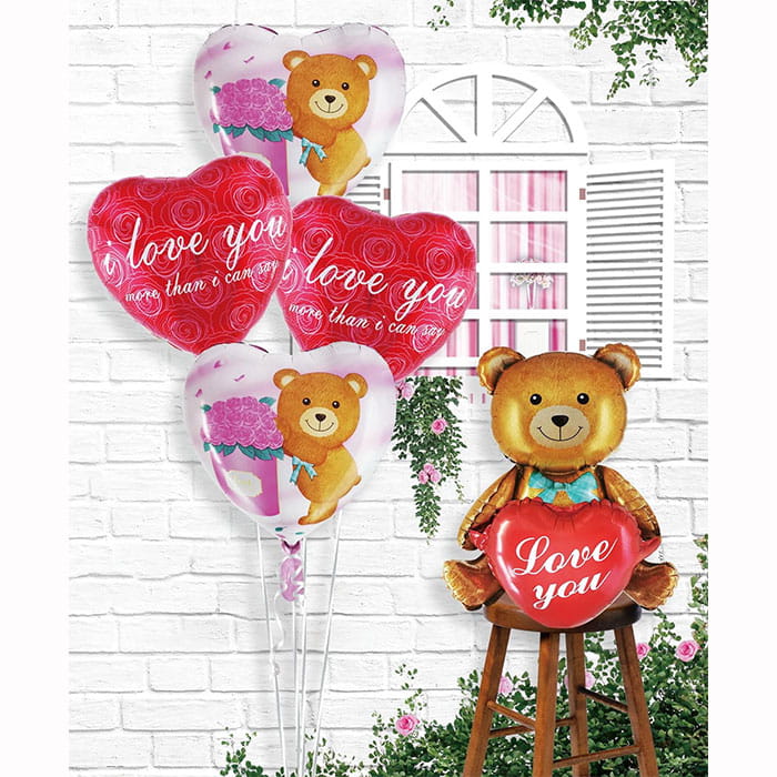 ZESTAW BALONÓW SERCE MIŚ I LOVE YOU WALENTYNKI 5SZT